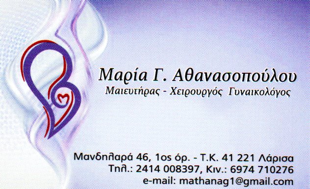ΓΥΝΑΙΚΟΛΟΓΙΚΟ ΙΑΤΡΕΙΟ ΣΤΗ ΛΑΡΙΣΑ, ΓΥΝΑΙΚΟΛΟΓΟΣ ΣΤΗ ΛΑΡΙΣΑ, ΜΑΙEΥΤΗΡΑΣ ΓΥΝΑΙΚΟΛΟΓΟΣ ΣΤΗ ΛΑΡΙΣΑ, ΠΛΗΡΗΣ ΓΥΝΑΙΚΟΛΟΓΙΚΟΣ ΕΛΕΓΧΟΣ, ΤΕΣΤ ΠΑΠΑΝΙΚΟΛΑΟΥ, ΠΑΘΟΛΟΓΙΑ ΤΡΑΧΗΛΟΥ, ΑΝΤΙΣΥΛΛΗΨΗ, ΕΦΗΒΙΚΗ ΓΥΝΑΙΚΟΛΟΓΙΑ, ΥΠΟΓΟΝΙΜΟΤΗΤΑ, ΛΑΠΑΡΟΣΚΟΠΗΣΗ, ΠΡΟΓΕΝΝΗΤΙΚΟΣ ΕΛΕΓΧΟΣ, ΠΑΡΑΚΟΛΟΥΘΗΣΗ ΚΥΗΣΗΣ, ΚΥΗΣΗ ΥΨΗΛΟΥ ΚΙΝΔΥΝΟΥ, 4D ΥΠΕΡΗΧΟΓΡΑΦΗΜΑ ΕΜΒΡΥΟΥ, ΤΟΚΕΤΟΣ, ΗΛΕΚΤΡΟΝΙΚΗ ΣΥΝΤΑΓΟΓΡΑΦΗΣΗ, ΥΣΤΕΡΟΣΚΟΠΗΣΗ, ΔΙΕΡΕΥΝΗΣΗ ΥΠΟΓΟΝΙΜΟΤΗΤΑΣ, ΔΙΑΤΑΡΑΧΕΣ ΚΥΚΛΟΥ, ΕΜΜΗΝΟΠΑΥΣΗ, ΑΘΑΝΑΣΟΠΟΥΛΟΥ ΜΑΡΙΑ ΜΑΙΕΥΤΗΡΑΣ ΓΥΝΑΙΚΟΛΟΓΟΣ ΛΑΡΙΣΑ, ΛΑΡΙΣΑ, Λάρισα