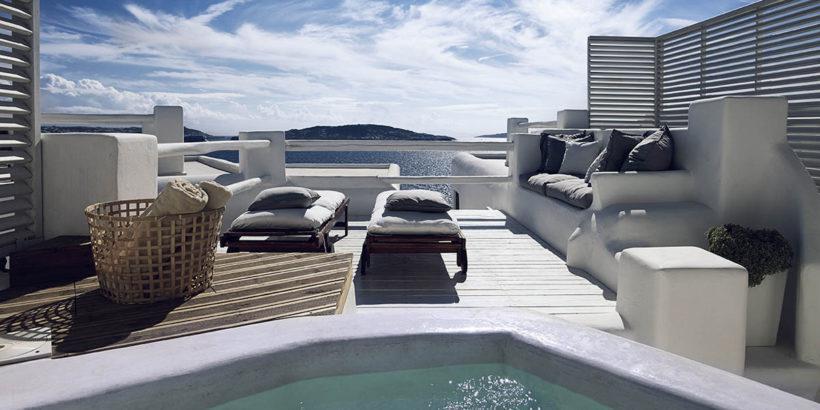 The Suites... The 4 honeymoon suites of Rocabella Mykonos feature spacious living areas and an outdoor spa overlooking the sea.
