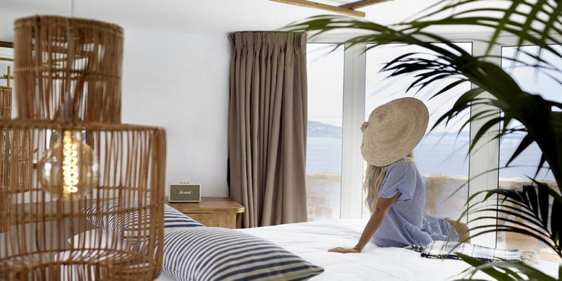 Η θέα ... Τα δωμάτια έχουν θέα στη θάλασσα, στο ιστορικό νησί της Δήλου και στη Ρένια ή, ανάλογα με τη θέση του δωματίου, στο νότιο τμήμα του Αιγαίου.