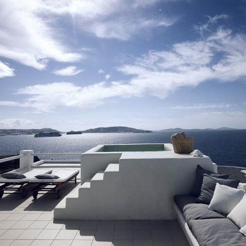 Οι σουίτες ... Οι 4 σουίτες του Rocabella Mykonos έχουν μεγάλους χώρους καθιστικού και υπαίθριο σπα με θέα στη θάλασσα.