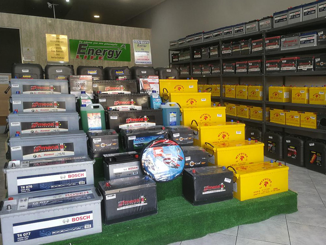 Από το κατάστημα ENERGY LIFE πηγάζει κάθε είδος μπαταρίας για οποιαδήποτε ανάγκη σας! Οι απαιτήσεις σας σε αυτοκίνητα, μοτοσυκλέτες, επαγγελματικά οχήματα, Στρατιωτικά οχήματα, φωτοβολταϊκά, σκάφη, συναγερμούς, κλαρκ, αναπηρικά αμαξίδια αλλά και ηλεκτρικά ποδήλατα και παιχνίδια καλύπτονται από επώνυμα, εγγυημένα brands μπαταριών όπως SUNLIGHT, BOSCH, VARTA, FIAMM, EXIDE, SKYRICH στις πιο συμφέρουσες τιμές. Είμαστε αντιπρόσωποι στις εταιρίες YUASA, A-MEGA, TOP CAR, MERCURY,UPLUS, NORD, FOX,PS, PATRIOT, TECHNIKA,ROYAL, MODILE και γνωρίζουμε χρόνια τώρα την απόλυτη εφαρμογή της σχέσης ποιότητας-τιμής! Η συνεργασία μας με τα μεγαλύτερα εργοστάσια συσσωρευτών και η απευθείας εισαγωγή διαμορφώνουν τις τιμές μας από τις καλύτερες της αγοράς