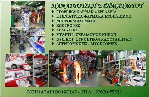 ΓΕΩΡΓΙΚΑ ΕΙΔΗ ΣΤΟ ΣΧΗΜΑΤΑΡΙ ΒΟΙΩΤΙΑΣ: ΓΕΩΡΓΙΚΑ ΦΑΡΜΑΚΑ, ΣΠΟΡΟΙ, ΦΥΤΑ, ΛΙΠΑΣΜΑΤΑ, ΑΡΔΕΥΤΙΚΑ, ΖΩΟΤΡΟΦΕΣ, ΕΡΓΑΛΕΙΑ, ΚΤΗΝΙΑΤΡΙΚΟΣ ΕΞΟΠΛΙΣΜΟΣ, ΧΛΟΟΤΑΠΗΤΕΣ, ΑΠΕΝΤΟΜΩΣΕΙΣ-ΜΥΟΚΤΟΝΙΕΣ, ΑΝΑΛΥΣΕΙΣ ΕΔΑΦΟΥΣ, ΧΟΝΔΡΙΚΟ ΚΑΙ ΛΙΑΝΙΚΟ ΕΜΠΟΡΙΟ ΓΕΩΡΓΙΚΩΝ ΕΙΔΩΝ ΣΤΟ ΣΧΗΜΑΤΑΡΙ ΚΑΙ ΤΟ ΝΟΜΟ ΒΟΙΩΤΙΑΣ.