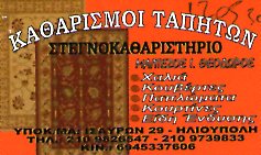 Καθαρισμός, φύλαξη χαλιών, μοκετών κουρτινών, κουβερτών, παπλωμάτων, καθώς και κάθε είδους ενδυμάτων. Παραλαβή και παράδοση κατ`οίκον. Στοιχεία αναζήτησης:Καθαριστήρια Βαφεία Πλυντήρια, Άλιμος