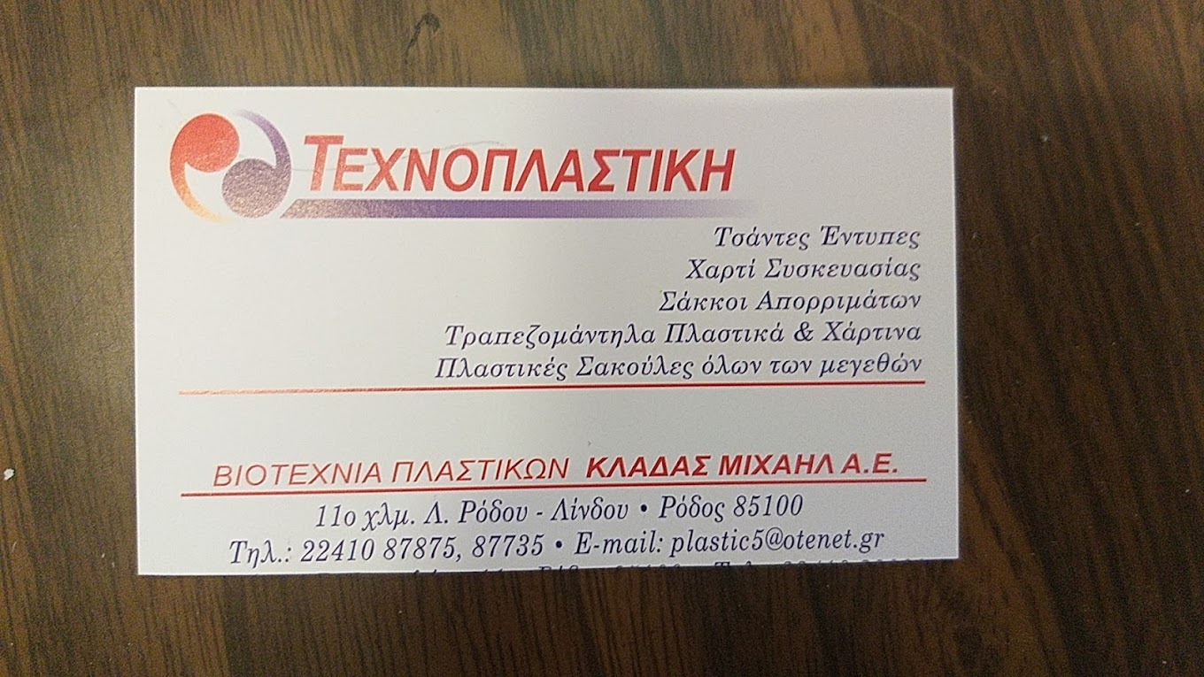 ΤΕΧΝΟΠΛΑΣΤΙΚΗ - ΒΙΟΤΕΧΝΙΑ ΠΛΑΣΤΙΚΩΝ - ΚΛΑΔΑΣ ΜΙΧΑΗΛ ΑΕ - ΡΟΔΟΣ