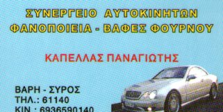 ΦΑΝΟΠΟΙΙΟ ΑΥΤΟΚΙΝΗΤΩΝ ΚΑΠΕΛΛΑΣ ΠΑΝΑΓΙΩΤΗΣ-ΣΥΡΟΣ