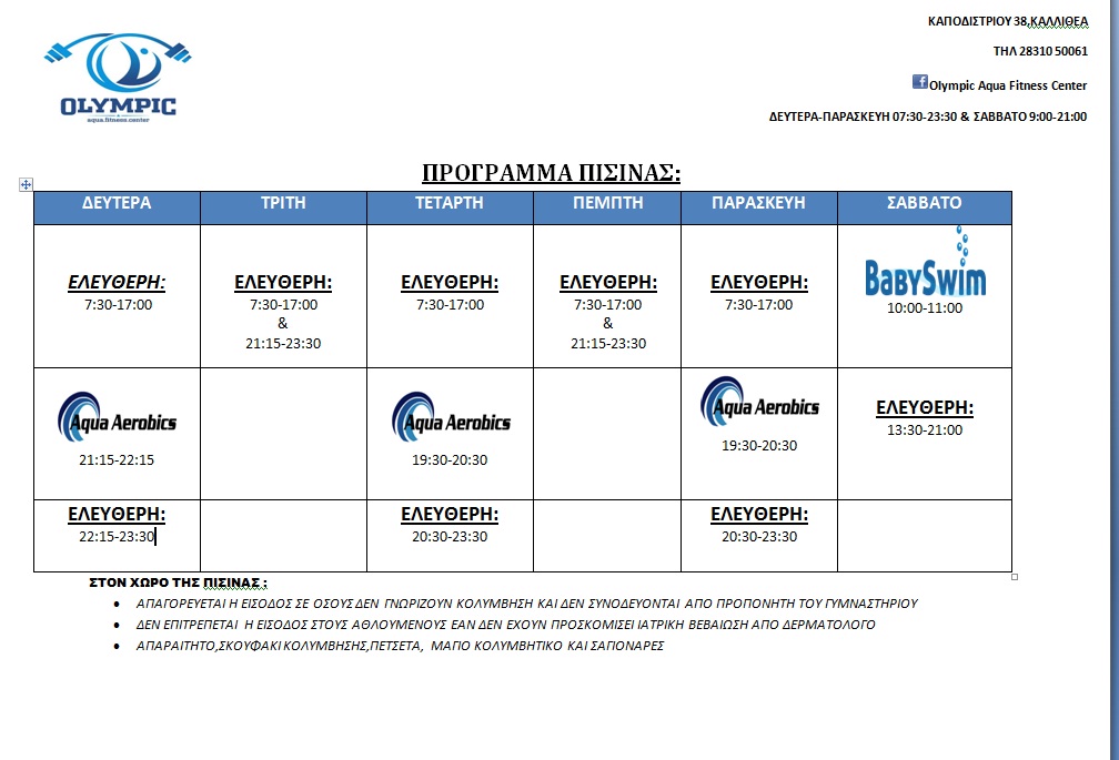 OLYMPIC AQUA FITNESS CENTER ΣΤΟ ΡΕΘΥΜΝΟ , ΓΥΜΝΑΣΤΗΡΙΟ ΣΤΟ ΡΕΘΥΜΝΟ , ΚΟΛΥΜΒΗΤΗΡΙΟ ΣΤΟ ΡΕΘΥΜΝΟ , ΓΥΜΝΑΣΤΕΣ ΣΤΟ ΡΕΘΥΜΝΟ ,