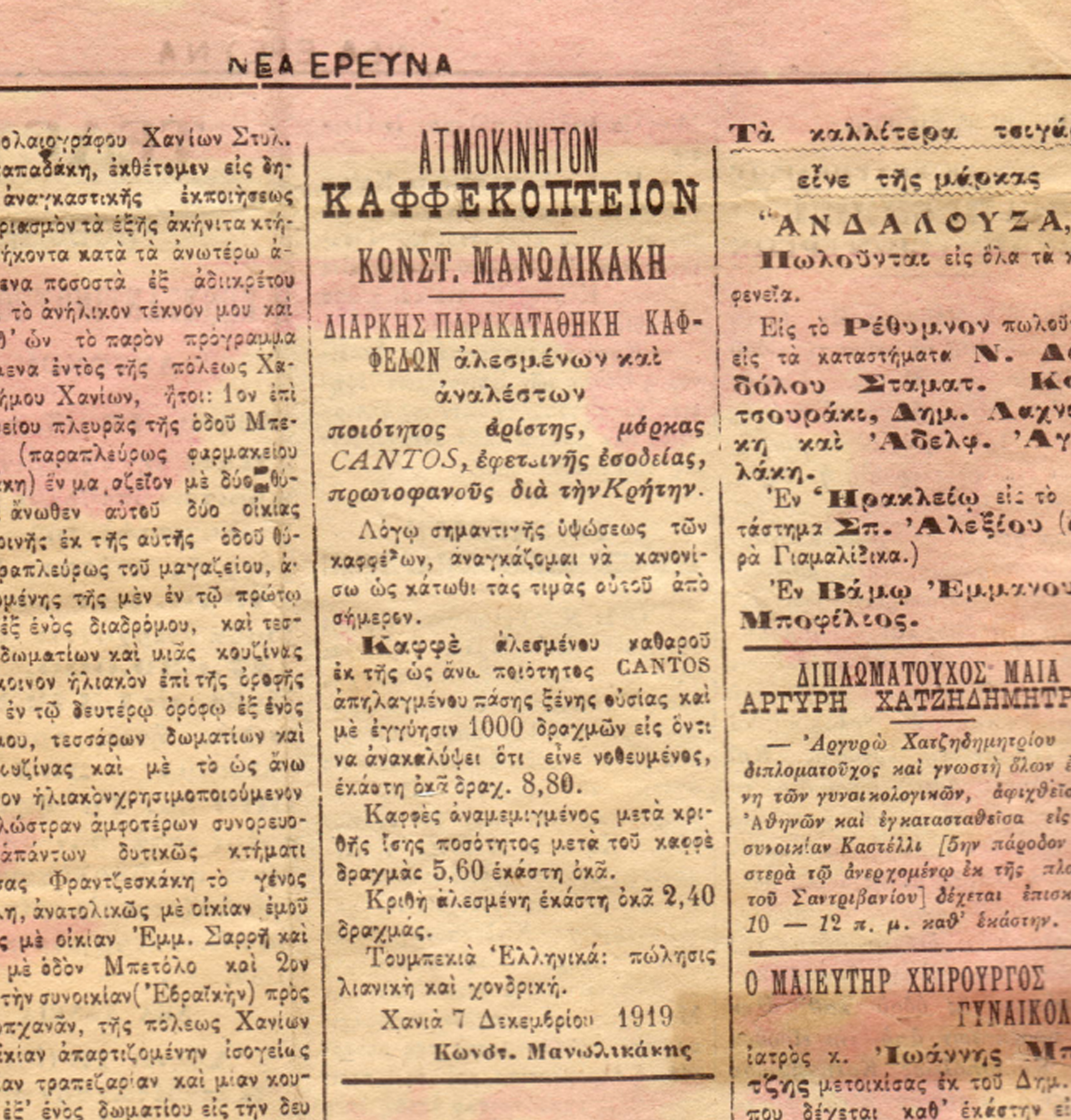 ΜΑΝΩΛΙΚΑΚΗΣ Κ. Α.Ε. -1886 - ΚΑΦΕΔΕΣ - ΠΟΤΑ - ΒΙΟΤΕΧΝΙΚΟ ΠΑΡΚΟ ΧΑΝΙΩΝ