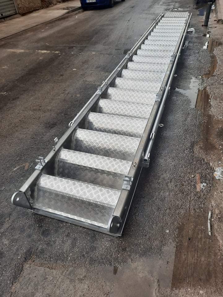 Κατασκευάζουμε σκάλες για πλοία σύμφωνα με τους διεθνείς κανονισμούς. Χρησιμοποιούμε τα κατάλληλα υλικά για μια κατασκευή που αντέχει στον χρόνο. Όλες οι σκάλες μας συνοδεύονται από πιστοποιητικό αντοχής.