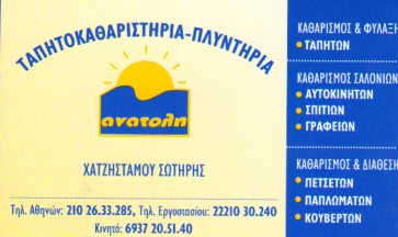 ΑΝΑΤΟΛΗ ΤΑΠΗΤΟΚΑΘΑΡΙΣΤΗΡΙΑ