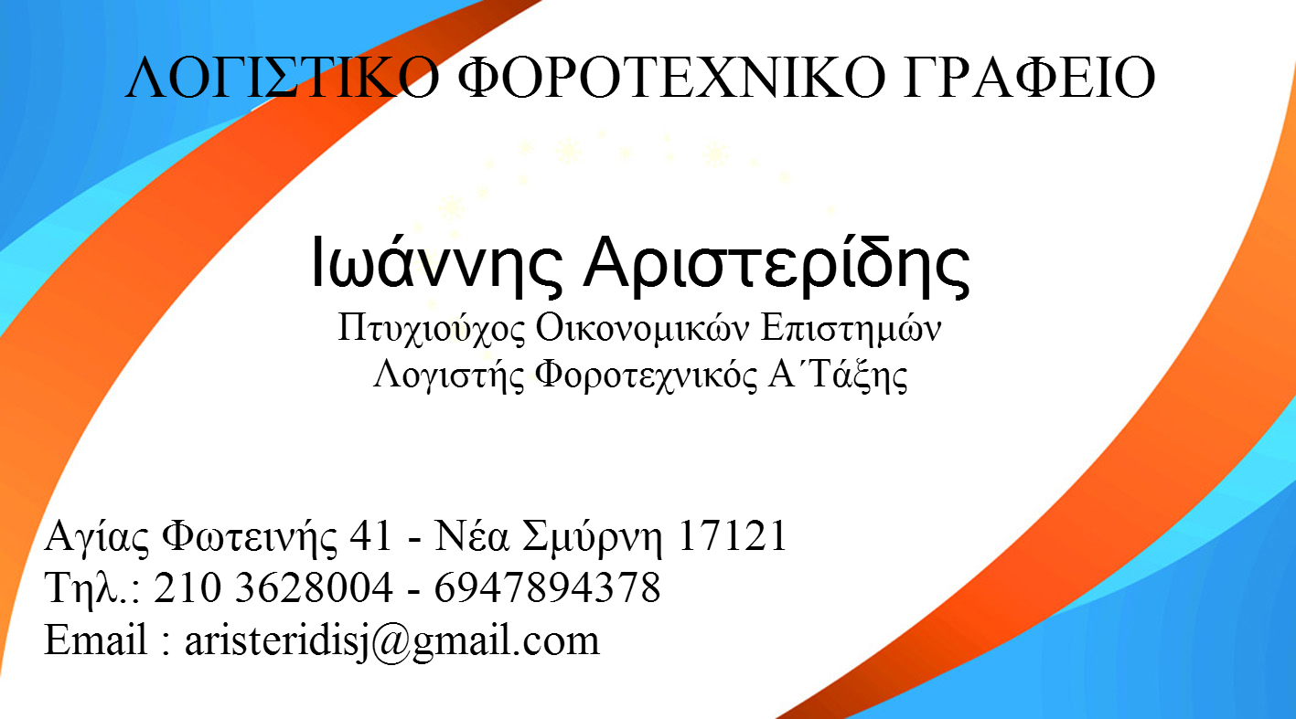 ΛΟΓΙΣΤΙΚΟ ΓΡΑΦΕΙΟ ΑΡΙΣΤΕΡΙΔΗΣ ΙΩΑΝΝΗΣ