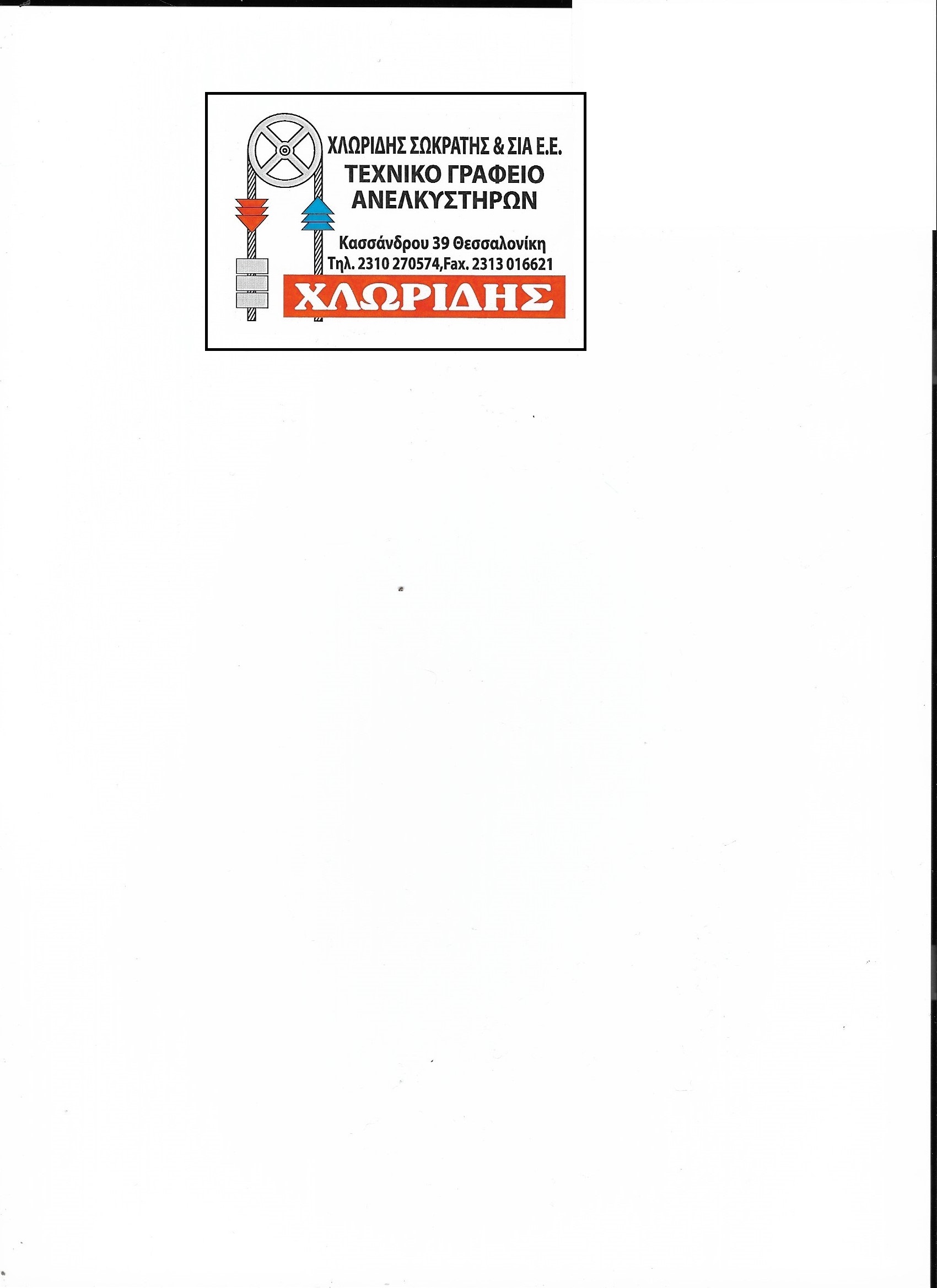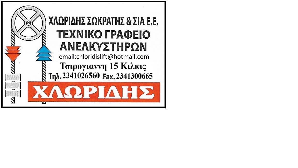 Α Τεχνικό Γραφείο Ανελκυστήρων Χλωριδης Σωκρατης & Σια ΕΕ ΚΙΛΚΙΣ-ΘΕΣΣΑΛΟΝΙΚΗ 2341026560-2310270574