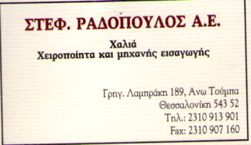 ΣΤΕΦ. ΡΑΔΟΠΟΥΛΟΣ Α.Ε. - 2310907160 - 2310913901
