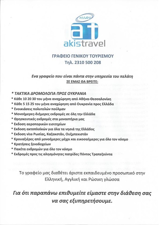 ΓΡΑΦΕΙΟ ΓΕΝΙΚΟΥ ΤΟΥΡΙΣΜΟΥ ΣΤΗ ΘΕΣΣΑΛΟΝΙΚΗ , ΤΑΞΙΔΙΩΤΙΚΑ ΓΡΑΦΕΙΑ ΣΤΗ ΘΕΣΣΑΛΟΝΙΚΗ , ΤΟΥΡΙΣΤΙΚΟ ΓΡΑΦΕΙΟ ΣΤΗ ΘΕΣΣΑΛΟΝΙΚΗ , ΠΡΑΚΤΟΡΕΙΟ ΕΚΔΟΣΗΣ ΕΙΣΙΤΗΡΙΩΝ ΣΤΗ ΘΕΣΣΑΛΟΝΙΚΗ , ΚΡΑΤΗΣΕΙΣ ΞΕΝΟΔΟΧΕΙΩΝ-ΚΡΟΥΑΖΙΕΡΕΣ. ΑΕΡΟΠΟΡΙΚΑ-ΑΚΤΟΠΛΟΪΚΑ ΕΙΣΙΤΗΡΙΑ ΣΤΗ ΘΕΣΣΑΛΟΝΙΚΗ .