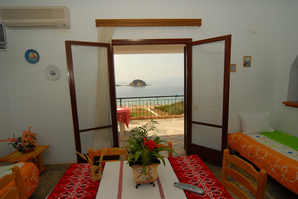 Tutti gli appartamenti hanno una cucina completamente attrezzata, W.C. con doccia, T. V, A / C, e balconi e terrazze di tutti gli appartamenti sono situati sul lato sud e offrono una vista panoramica sul mare e unico Troulonisi.