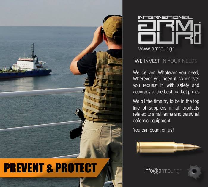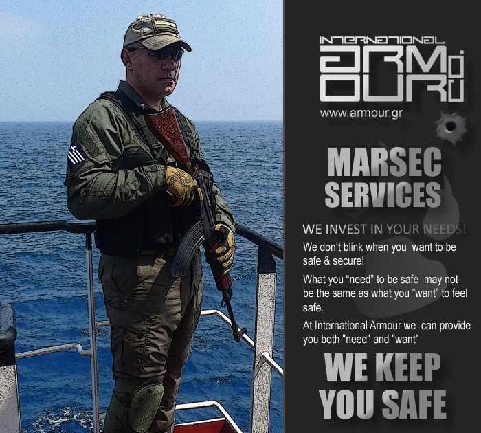 Στον χώρο της Ναυτιλίας και σε συνεργασία με στρατηγικούς εταίρους, παρέχουμε ολοκληρωμένες λύσεις προστασίας και φύλαξης των πλοίων που ταξιδεύουν στις επικίνδυνες περιοχές της Ερυθράς, στον κόλπο του Aden, στον κόλπο του Oman και στον Ινδικό Ωκεανό ενώ κατέχουμε πλέον του 60% σε ότι αφορά την προμήθεια οπλισμού και εξοπλισμού σε εταιρείες που δραστηριοποιούνται στον τομέα της ένοπλης φύλαξης των εμπορικών πλοίων (Private Maritime Security Companies)