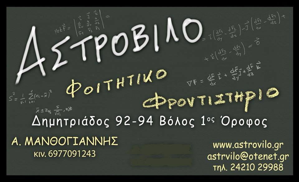 ΦΡΟΝΤΙΣΤΗΡΙΟ ΜΕΣΗΣ ΕΚΠΑΙΔΕΥΣΗΣ ΣΤΟ ΒΟΛΟ , ΦΡΟΝΤΙΣΤΗΡΙΟ ΕΙΣΑΓΩΓΙΚΩΝ ΕΞΕΤΑΣΕΩΝ ΣΤΟ ΒΟΛΟ , ΦΡΟΝΤΙΣΤΗΡΙΟ ΜΕΣΗΣ ΕΚΠΑΙΔΕΥΣΗΣ ΣΤΗ ΜΑΓΝΗΣΙΑ, ΑΣΤΡΟΒΙΛΟ ΦΡΟΝΤΙΣΤΗΡΙΟ ΒΟΛΟΣ, ΦΟΙΤΗΤΙΚΟ ΦΡΟΝΤΙΣΤΗΡΙΟ ΑΣΤΡΟΒΙΛΟ, ΦΡΟΝΤΙΣΤΗΡΙΟ ΑΝΩΤΑΤΗΣ ΕΚΠΑΙΔΕΥΣΗΣ, ΒΟΛΟΣ