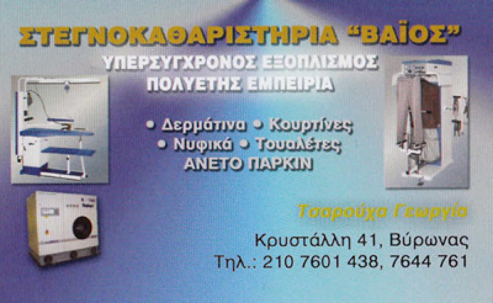 ΣΤΕΓΝΟΚΑΘΑΡΙΣΤΗΡΙΟ ΒΑΪΟΣ -ΚΡΥΣΤΑΛΛΗ 41-ΒΥΡΩΝΑΣ ΑΘΗΝΑ ΤΗΛ. 2107644761-6977349083 - 2107601438