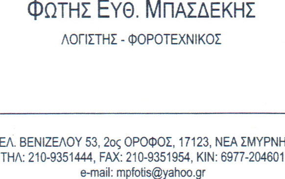 ΛΟΓΙΣΤΙΚΟ ΓΡΑΦΕΙΟ ΝΕΑ ΣΜΥΡΝΗ, ΛΟΓΙΣΤΗΣ ΝΕΑ ΣΜΥΡΝΗ , ΦΟΡΟΤΕΧΝΙΚΟΣ ΝΕΑ ΣΜΥΡΝΗ , ΦΟΡΟΛΟΓΙΚΕΣ ΔΗΛΩΣΕΙΣ ΝΕΑ ΣΜΥΡΝΗ , ΤΗΡΗΣΗ ΒΙΒΛΙΩΝ ΟΛΩΝ ΤΩΝ ΚΑΤΗΓΟΡΙΩΝ -ΜΙΣΘΟΔΟΣΙΕΣ, ΕΚΔΟΣΗ ΦΠΑ ΝΕΑ ΣΜΥΡΝΗ , ΑΙΤΗΜΑΤΑ -ΕΠΙΔΟΜΑΤΑ -ΟΑΕΔ -ΔΥΠΑ ΝΕΑ ΣΜΥΡΝΗ