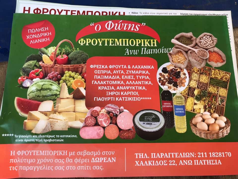 ΦΡΟΥΤΕΜΠΟΡΙΚΗ ΠΑΤΗΣΙΩΝ -ΧΑΛΚΙΔΟΣ 22-ΑΝΩ ΠΑΤΗΣΙΑ ΤΗΛ.2111828170