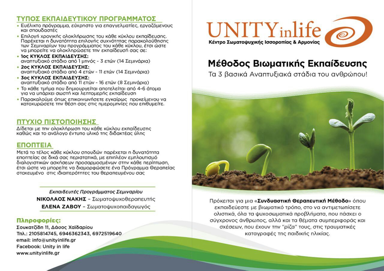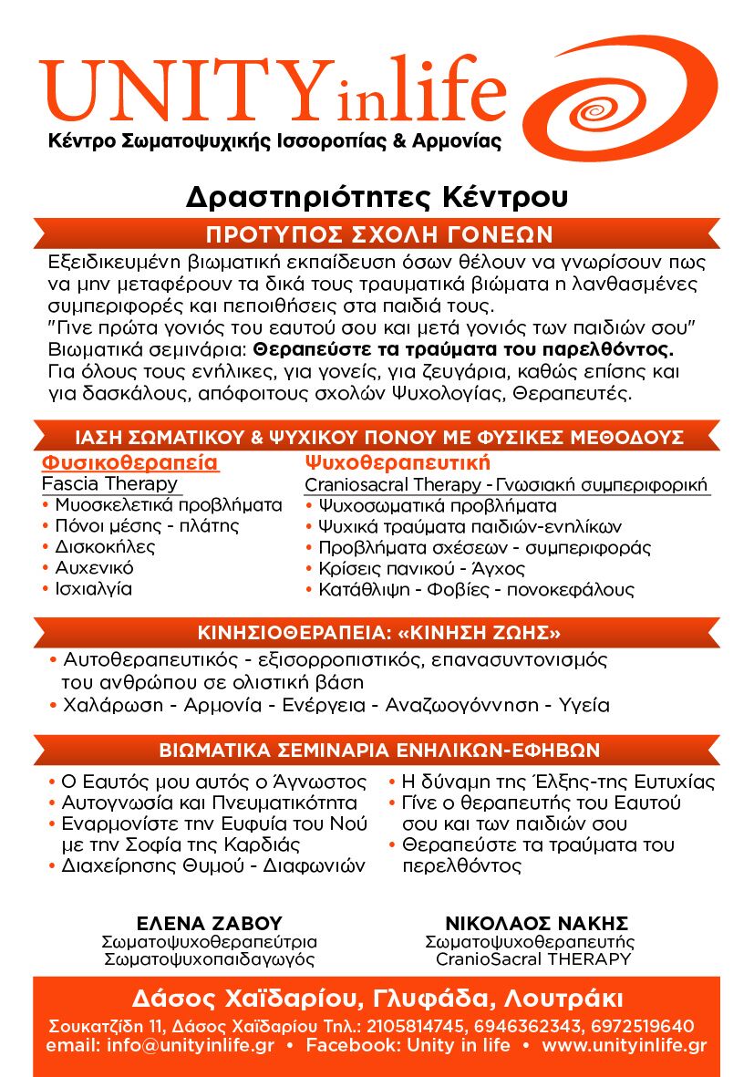 UNITY IN LIFE - ΚΕΝΤΡΟ ΨΥΧΟΣΩΜΑΤΙΚΗΣ ΥΓΕΙΑΣ ( ΝΑΚΗΣ ΝΙΚΟΛΑΟΣ)