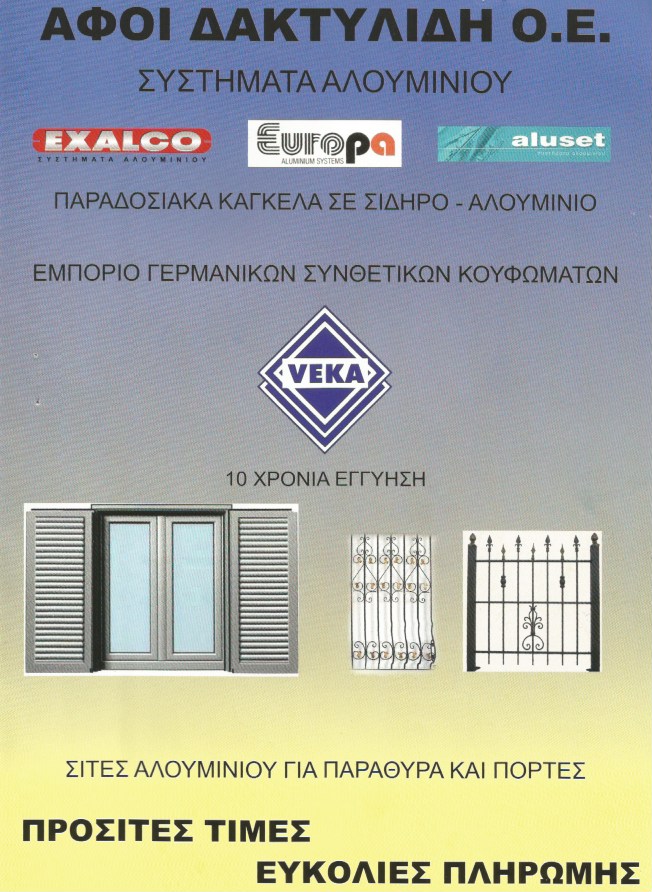 ΣΥΣΤΗΜΑΤΑ ΑΛΟΥΜΙΝΙΟΥ ΙΛΙΟΝ, ΚΑΤΑΣΚΕΥΕΣ ΑΛΟΥΜΙΝΙΟΥ ΙΛΙΟΝ, ΚΑΤΑΣΚΕΥΕΣ ΣΥΝΘΕΤΙΚΩΝ ΚΟΥΦΩΜΑΤΩΝ ΙΛΙΟΝ, PVC ΙΛΙΟΝ, ΕΜΠΟΡΙΟ ΓΕΡΜΑΝΙΚΩΝ ΣΥΝΘΕΤΙΚΩΝ ΚΟΥΦΩΜΑΤΩΝ ΙΛΙΟΝ, ΚΑΤΑΣΚΕΥΗ ΞΥΛΙΝΩΝ ΚΟΥΦΩΜΑΤΩΝ - ΠΟΡΤΩΝ - ΚΟΥΖΙΝΩΝ ΙΛΙΟΝ, ΔΑΚΤΥΛΙΔΗΣ ΙΛΙΟΝ
