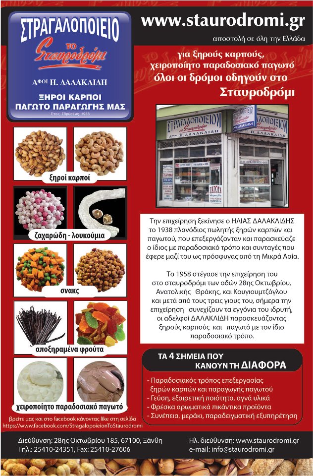 ΤΟ ΣΤΑΥΡΟΔΡΟΜΙ ΣΤΗΝ ΞΑΝΘΗ , ΞΗΡΟΙ ΚΑΡΠΟΙ ΣΤΗΝ ΞΑΝΘΗ , ΠΟΤΑ ΣΤΗΝ ΞΑΝΘΗ , ΣΝΑΚΣ ΣΤΗΝ ΞΑΝΘΗ , ΑΠΟΞΗΡΑΜΕΝΑ ΦΡΟΥΤΑ ΣΤΗΝ ΞΑΝΘΗ , ΖΑΧΑΡΩΔΗ ΠΡΟΪΟΝΤΑ ΣΤΗΝ ΞΑΝΘΗ , ΠΑΓΩΤΑ (ΔΙΚΗΣ ΜΑΣ ΠΑΡΑΓΩΓΗΣ) ΣΤΗΝ ΞΑΝΘΗ .
