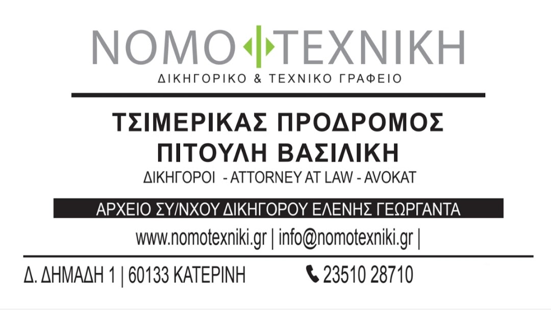 ΔΙΚΗΓΟΡΟΣ ΚΑΤΕΡΙΝΗ, ΔΙΚΗΓΟΡΙΚΟ ΓΡΑΦΕΙΟ ΚΑΤΕΡΙΝΗ, ΝΟΜΙΚΕΣ ΥΠΟΘΕΣΕΙΣ ΚΑΤΕΡΙΝΗ, ADVOKAT, ΚΤΗΜΑΤΟΛΟΓΙΟ, ΚΛΗΡΟΝΟΜΙΚΑ, ΧΡΕΗ, ΚΑΤΣΕΛΗ, ΡΥΘΜΙΣΗ, ΤΡΑΠΕΖΕΣ, ΟΦΕΙΛΕΣ, ΔΑΝΕΙΑ