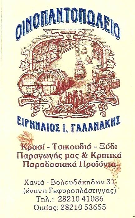 ΟΙΝΟΠΑΝΤΟΠΩΛΕΙΟ - ΓΑΛΑΝΑΚΗΣ Ι. ΕΙΡΗΝΑΙΟΣ