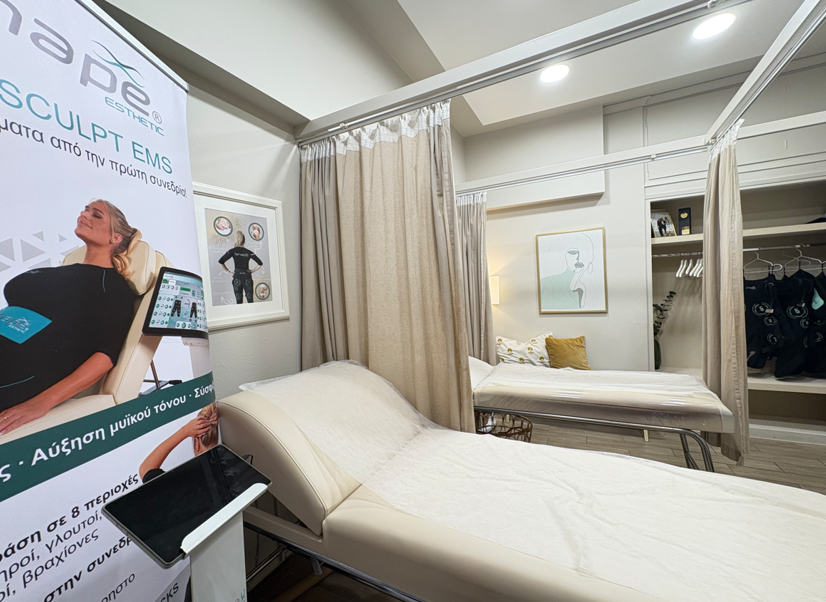 Υπηρεσίες Σώματος: Βιολογική αποτρίχωση με ζεστό/κρύο κερί - Ενζυμική αποτρίχωση - Αποτρίχωση με κλωστή - Αποτρίχωση Laser με Αλεξανδρίτη RENOVA ALEX3 POWER LASER ALEXANDRITE με 3 μήκη κύματος - Εξειδικευμένα πακέτα αδυνατίσματος - RESHAPE BODY SCULPT EMS Το ReShape® είναι ένα πολυλειτουργικό μηχάνημα διαμόρφωσης σώματος και δημιουργίας μυών. Είναι κατάλληλο για αύξηση μυών, διάλυση λίπους, γράμμωση κοιλιάς και ανόρθωση γλουτών. Είναι ιδιαίτερα αποτελεσματικό για τους γλουτούς και την κοιλιά. Χρησιμοποιεί τεχνολογία υψηλής έντασης Βody Sculpt EMS για την πρόκληση βραχυπρόθεσμων εκρήξεων ισχυρής μυϊκής συστολής, με αποτέλεσμα την αυξημένη μυϊκή πυκνότητα.