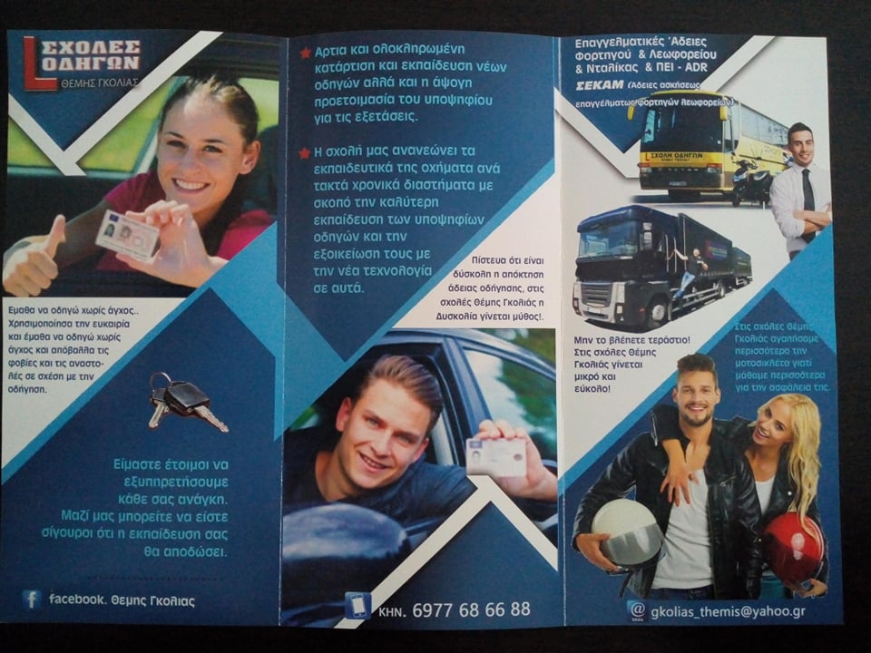 ΣΧΟΛΕΣ ΟΔΗΓΩΝ ΘΕΜΗΣ ΓΚΟΛΙΑΣ ,ΔΙΠΛΩΜΑΤΑ ΟΔΗΓΗΣΗΣ ΟΛΩΝ ΤΩΝ ΚΑΤΗΓΟΡΙΩΝ,ΕΠΕΚΤΑΣΕΙΣ,ΑΝΑΘΕΩΡΗΣΕΙΣ ΔΙΠΛΩΜΑΤΩΝ,ΜΕΤΑΒΙΒΑΣΕΙΣ ΑΣΦΑΛΕΙΕΣ ΑΥΤΟΚΙΝΗΤΩΝ,ΜΑΘΗΜΑΤΑ ΠΕΙ,ADR ΚΑΙ ΣΕΚΑΜ(αδειες Εθνικων και διεθνων Μεταφορων)