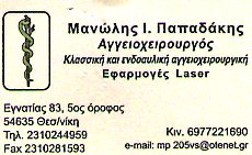 ΠΑΠΑΔΑΚΗΣ ΕΜΜΑΝΟΥΗΛ - ΑΓΓΕΙΟΧΕΙΡΟΥΡΓΟΣ - 2310244959 Εγνατία 83 - 5ος όροφος ΘΕΣΣΑΛΟΝΙΚΗ , 2310244959 , 6977221690