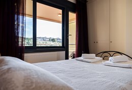 Όλα τα δωμάτια διαθέτουν μεγάλα μπαλκόνια με ανεμπόδιστη θέα στη θάλασσα και το νησί των Αγ. Θεοδώρων αλλά και στα βουνά εκτός από ένα δωμάτιο το οποίο έχει αυλή που οδηγεί σε ένα πολύ μεγάλο κήπο με γκαζόν και υπέροχη θέα στη θάλασσα. Επίσης διαθέτει και κεντρική θέρμανση & σόμπα εξωτερικού χώρου ("μανιτάρι") για τους χειμερινούς επισκέπτες.