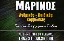 Ανδρικό - παιδικό παραδοσιακό κουρείο ΜΑΡΙΝΟΣ. Θα μας βρείτε στην οδό Αγίου Δημητρίου 83 στον Πειραιά.