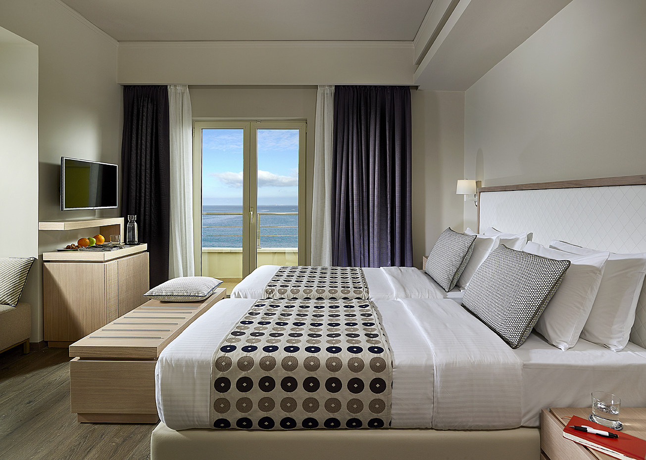 Τα δωμάτια στο Irida Hotel είναι πλήρως κλιματιζόμενα και περιλαμβάνουν ιδιωτικό μπαλκόνι με πανοραμική θέα στη θάλασσα και στην παλιά πόλη των Χανίων.