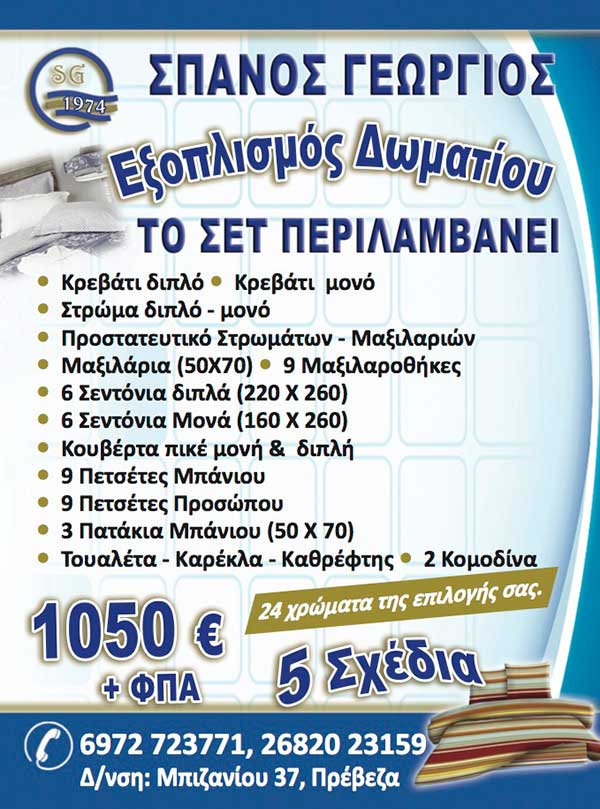 ΛΕΥΚΑ ΕΙΔΗ ΠΡΕΒΕΖΑ, ΕΙΔΗ ΠΡΟΙΚΟΣ ΠΡΕΒΕΖΑ, ΣΕΝΤΟΝΙΑ - ΠΑΠΛΩΜΑΤΑ - ΚΟΥΒΕΡΤΕΣ ΠΡΕΒΕΖΑ, ΚΑΤΑΣΚΕΥΗ ΜΑΞΙΛΑΡΙΩΝ ΠΡΕΒΕΖΑ, ΜΑΞΙΛΑΡΙΑ ΠΡΕΒΕΖΑ, ΞΕΝΟΔΟΧΕΙΑΚΟΣ ΕΞΟΠΛΙΣΜΟΣ ΠΡΕΒΕΖΑ, ΠΡΕΒΕΖΑ
