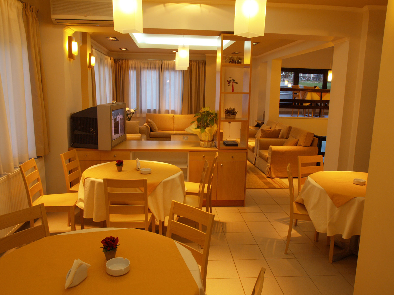 Ακόμα δημιουργήσαμε σαλόνι και χώρο πρωινού υψηλής ποιότητας κλιματιζόμενο και διατηρήσαμε το bar με το παραδοσιακό του ύφος.