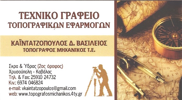 ΚΑΪΝΤΑΤΖΟΠΟΥΛΟΣ Δ. ΒΑΣΙΛΕΙΟΣ - ΤΟΠΟΓΡΑΦΟΣ - ΜΗΧΑΝΙΚΟΣ - ΑΓΡΟΝΟΜΟΣ -ΧΡΥΣΟΥΠΟΛΗ ΚΑΒΑΛΑΣ