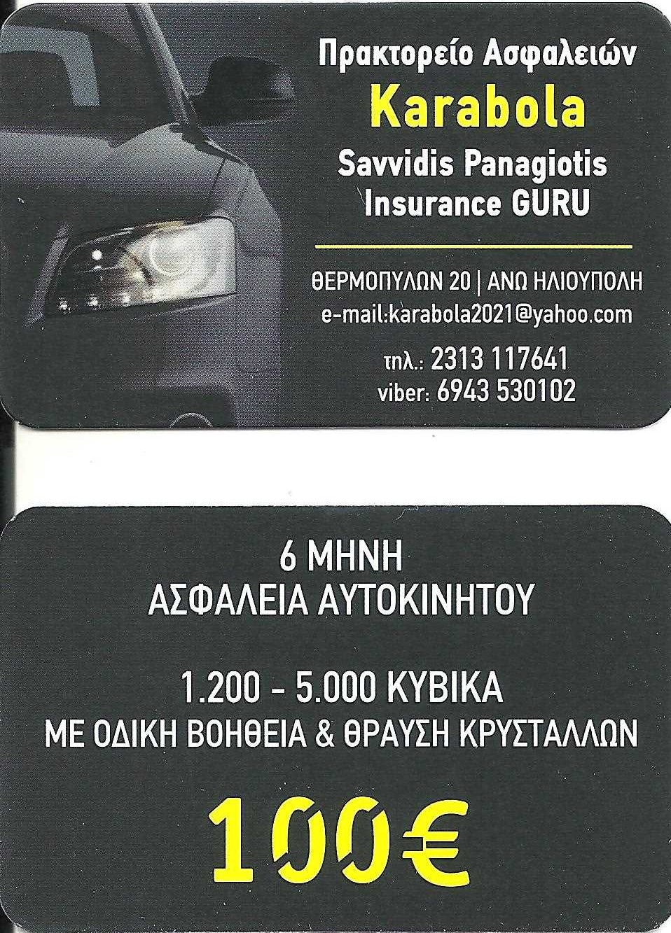 KARABOLA ΑΣΦΑΛΕΙΕΣ ΣΤΑΥΡΟΥΠΟΛΗ , ΑΣΦΑΛΕΙΕΣ ΘΕΣΣΑΛΟΝΙΚΗ , ΑΣΦΑΛΙΣΤΙΚΟ ΓΡΑΦΕΙΟ ΣΤΑΥΡΟΥΠΟΛΗ ΘΕΣΣΑΛΟΝΙΚΗ , ΑΣΦΑΛΕΙΕΣ ΑΥΤΟΚΙΝΗΤΩΝ ΣΤΑΥΡΟΥΠΟΛΗ ΘΕΣΣΑΛΟΝΙΚΗ , ΑΣΦΑΛΕΙΑ ΑΤΥΧΗΜΑΤΟΣ ΣΤΑΥΡΟΥΠΟΛΗ ΘΕΣΣΑΛΟΝΙΚΗ , ΑΣΦΑΛΕΙΣΕΣ ΟΧΗΜΑΤΩΝ ΣΤΑΥΡΟΥΠΟΛΗ ΘΕΣΣΑΛΟΝΙΚΗ , ΑΣΦΑΛΕΙΑ ΜΟΤΟΣΥΚΛΕΤΑΣ ΣΤΑΥΡΟΥΠΟΛΗ ΘΕΣΣΑΛΟΝΙΚΗ .