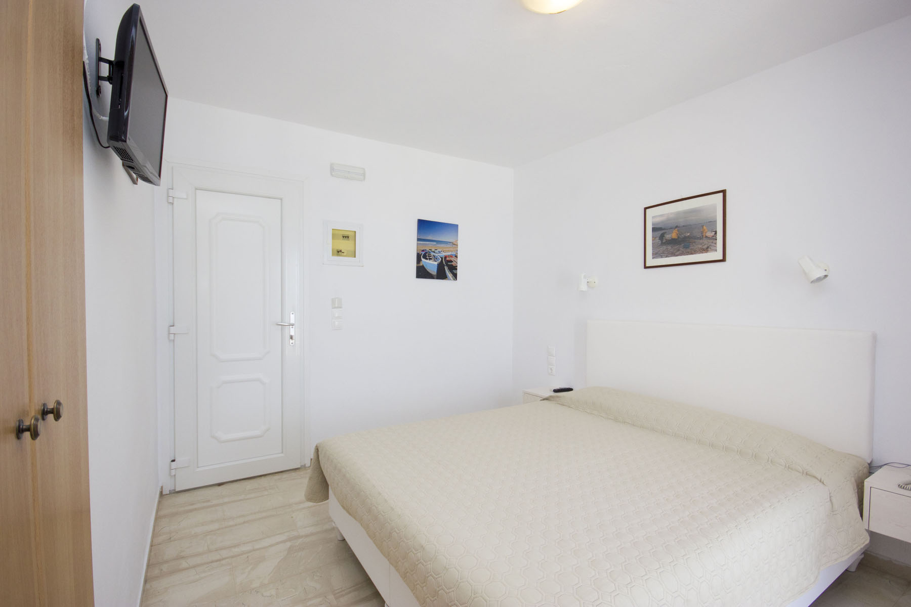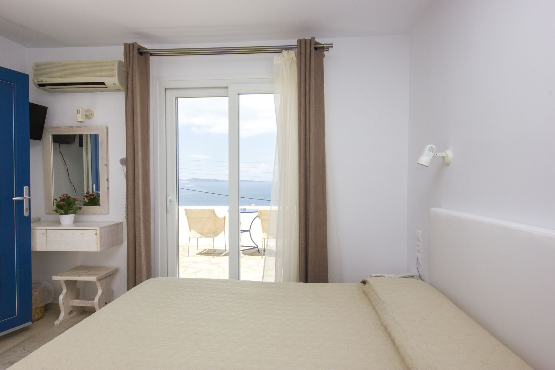 Recently renovated, Spanelis Hotels Rooms are elegant and cozy. Featuring a minimalistic Mykonian design, these rooms are ideal for resting, after spending the day on the beach or in Mykonos Town which is only a 5 minute walk away.