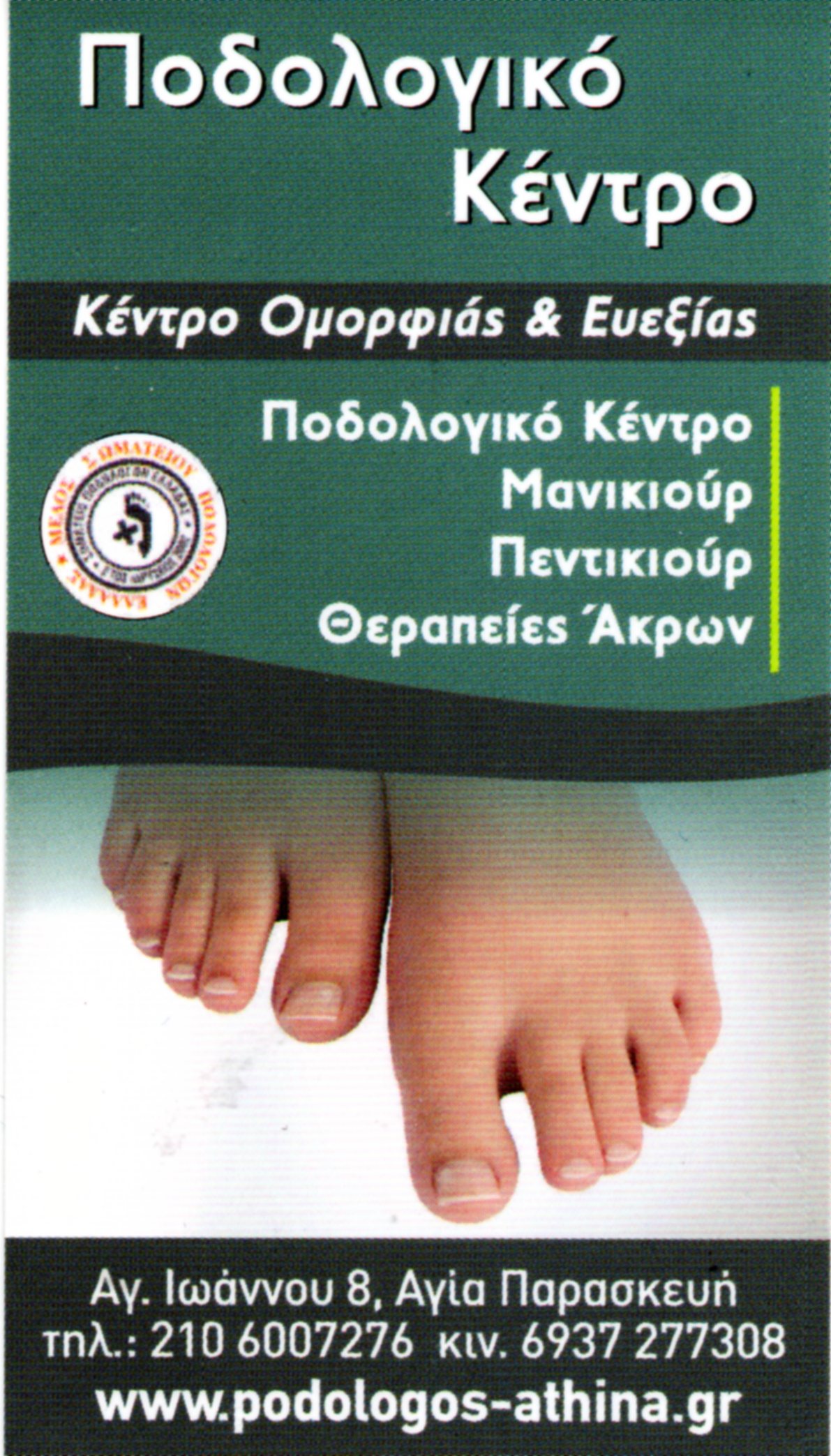 Κέντρο ποδολογίας Αγίας Παρασκευής, μέλος Σωματείου Ποδολόγων.