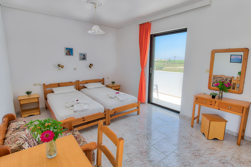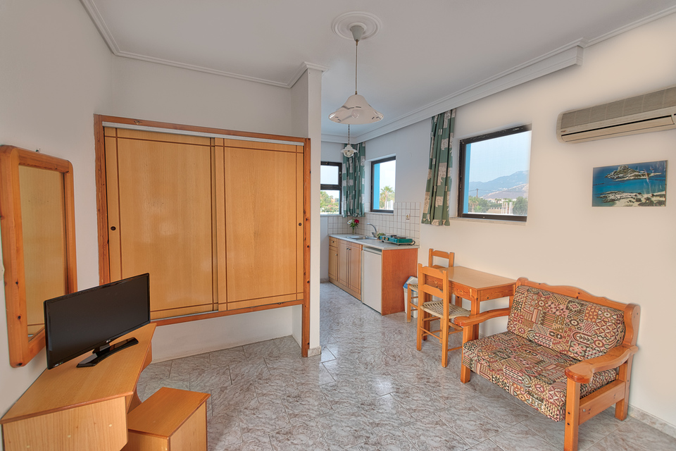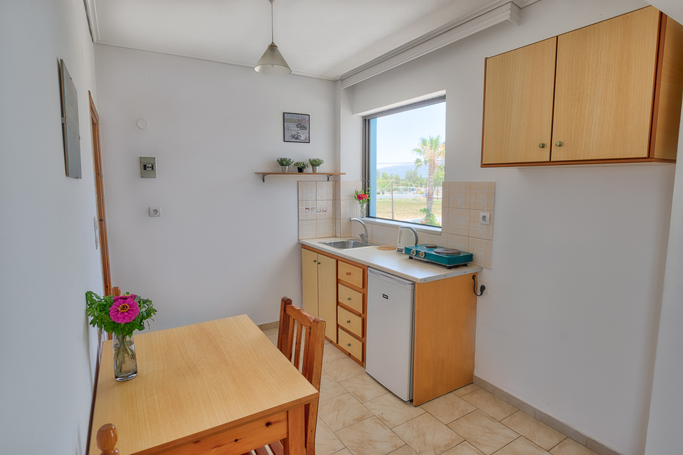 Gli appartamenti e i monolocali dell'Athia Apartments sono luminosi e confortevoli. Ognuno ha l'aria condizionata, un frigorifero e una cucina con tutti gli utensili necessari per mageirema.Epipleon, sono dotate di balcone con vista sul Mar Egeo, il giardino e le belle montagne di Kos, Giusti. C'è anche la connessione Wi-Fi nelle aree pubbliche.