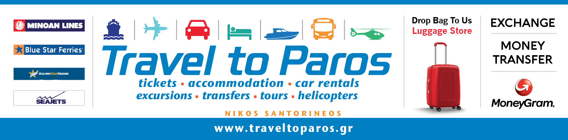 ΠΡΑΚΤΟΡΕΙΑ ΤΑΞΙΔΙΩΝ ΤΟΥΡΙΣΜΟΥ ΣΤΗΝ ΠΑΡΟ , ΤΑΞΙΔΙΩΤΙΚΟ ΓΡΑΦΕΙΟ ΣΤΗΝ ΠΑΡΟ , ΕΚΔΡΟΜΕΣ ΣΤΗΝ ΠΑΡΟ , ΟΡΓΑΝΩΜΕΝΑ ΤΑΞΙΔΙΑ ΣΤΗΝ ΠΑΡΟ , ΑΚΤΟΠΛΟΪΚΑ ΕΙΣΙΤΗΡΙΑ ΣΤΗΝ ΠΑΡΟ , ΑΕΡΟΠΟΡΙΚΑ ΕΙΣΙΤΗΡΙΑ ΣΤΗΝ ΠΑΡΟ, EXCHANGE, MONEYGRAM, LUGGAGE DEPOSIT