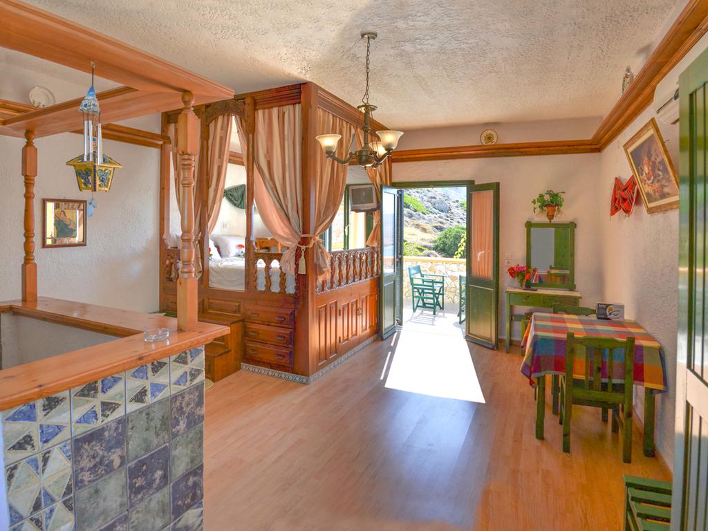 FINIKI VIEW, UN UNICO HOTEL POSTO NEL PICCOLO PORTE E LA SPIAGGIA DEL KARPATHIKOS VILLAGGIO FINIKI.MONO A 2 KM DA ARKASA, FINIKI VIEW E 'UN HOTEL AMPHITHEATRICO E TRADIZIONALE CON CUCCIOLI DI PAVIMENTI FIORI E ALBERI.