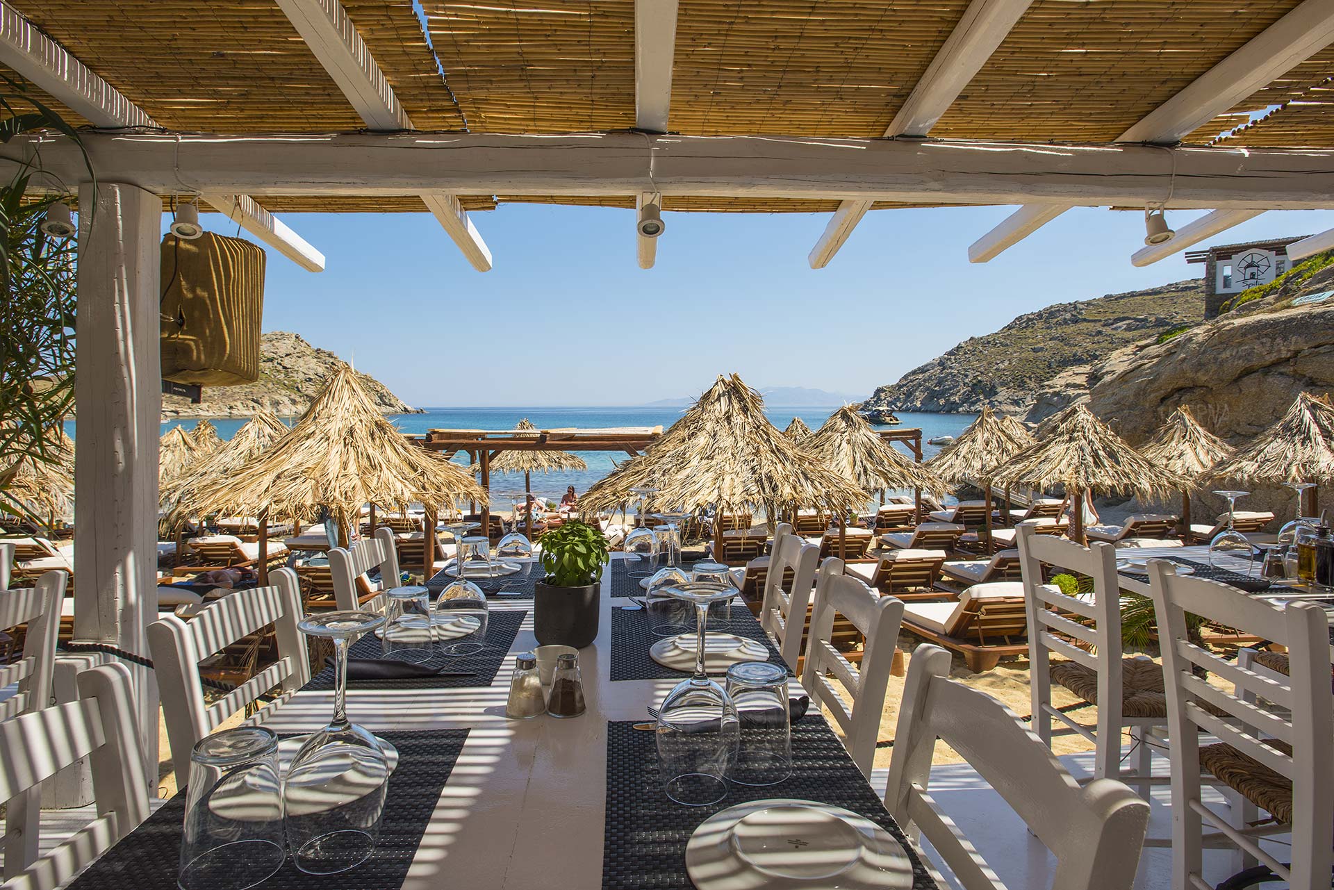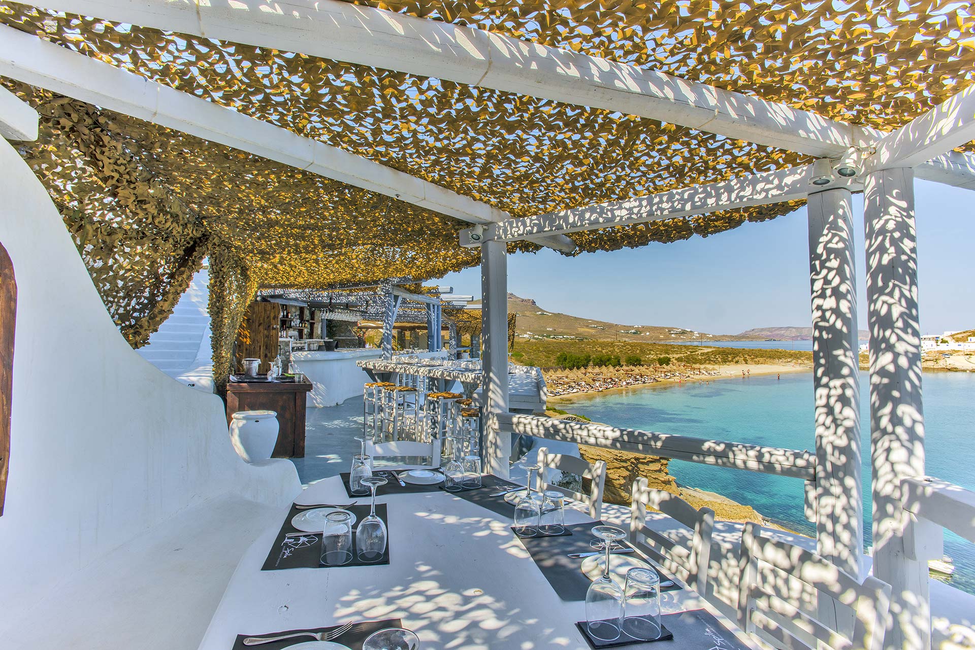 Με 30 χρόνια ιστορίας και πρόσφατο makeover, αυτός ο εκπληκτικός ολοήμερος χώρος διαθέτει πιάτα που προσφέρουν μια αυθεντική γαστρονομική εμπειρία στη Μεσόγειο-Μυκονία. Θαλασσινά και φρέσκα ψάρια σερβίρονται κατευθείαν από το Αιγαίο - στρείδια, μύδια, αχινοί, καραβίδες και αστακοί περιμένουν την παραγγελία σας σε μια μικρή, φυσική πισίνα με θαλασσινά, που θα προετοιμαστούν μπροστά στα μάτια σας.