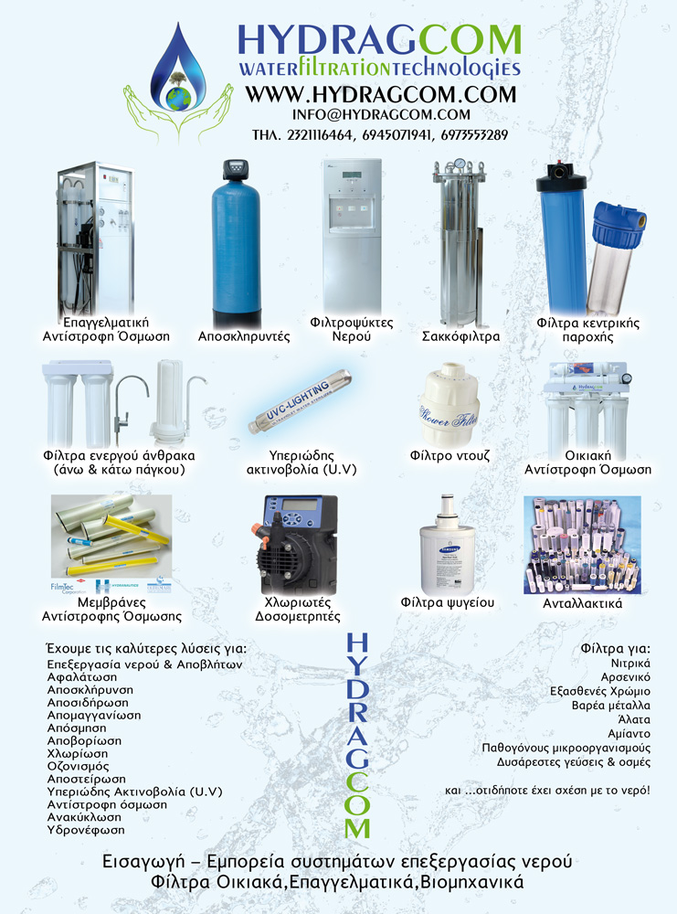 ΦΙΛΤΡΑ ΝΕΡΟΥ ΣΕΡΡΕΣ,ΣΥΣΤΗΜΑΤΑ ΕΠΕΞΕΡΓΑΣΙΑΣ ΝΕΡΟΥ ΣΕΡΡΕΣ, ΟΙΚΙΑΚΑ ΦΙΛΤΡΑ - ΕΠΑΓΓΕΛΜΑΤΙΚΑ ΦΙΛΤΡΑ - ΒΙΟΜΗΧΑΝΙΚΑ ΦΙΛΤΡΑ - ΧΛΩΡΙΩΣΗ - ΩΣΜΩΣΗ - ΑΠΟΣΚΛΗΡΥΝΣΗ - ΕΠΕΞΕΡΓΑΣΙΑ ΝΕΡΟΥ ΣΕΡΡΕΣ, ΦΙΛΤΡΑ ΨΥΓΕΙΩΝ ΣΕΡΡΕΣ, ΑΠΟΣΚΛΗΡΥΝΤΕΣ ΣΕΡΡΕΣ, ΑΝΤΙΣΤΡΟΦΗ ΩΣΜΩΣΗ, ΦΙΛΤΡΑ ΕΝΥΔΡΕΙΩΝ ΣΕΡΡΕΣ, HYDRAGCOM ΣΕΡΡΕΣ, ΣΕΡΡΕΣ