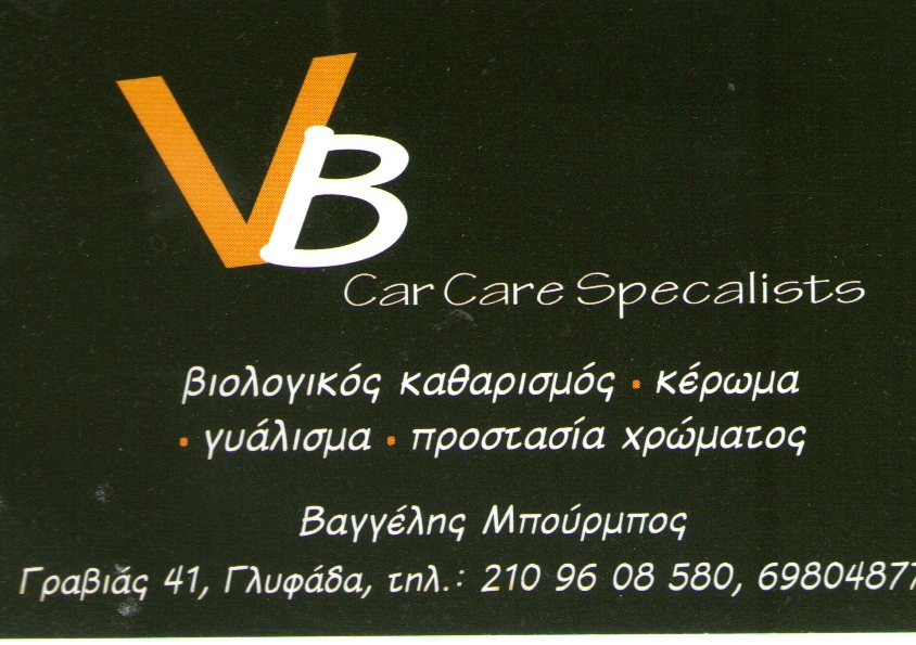 Η εταιρεία μας VB Car Care Specialists ειδικεύεται στην περιποίηση οχημάτων (εσωτερικά - εξωτερικά) και μοτοσυκλετών από το 1990. Υπεύθυνος της εταιρείας VB Car Care Specialists είναι ο Βαγγέλης Μπούρμπος.