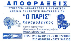 ΑΠΟΦΡΑΞΕΙΣ ΠΑΡΗΣ - ΚΑΡΑΜΟΛΕΓΚΟΣ ΝΙΚΟΛΑΟΣ ΠΑΡΑΣΚΕΥΑΣ